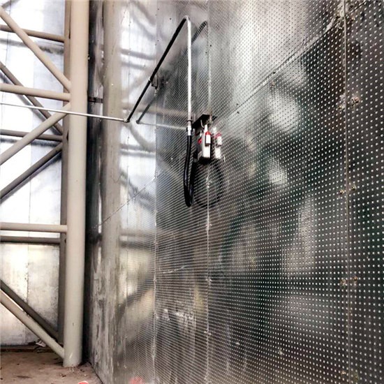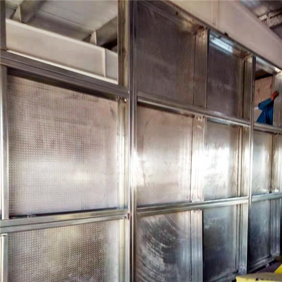 廠家生產(chǎn)的防爆墻采用的是層層結(jié)構(gòu)組和而成的,防爆墻的中間一層采用的是纖維水泥板,表層結(jié)構(gòu)為鍍鋅鋼板,表層鋼板之間有一定的間距,然后在面板上打出圓孔,打孔的時候把孔內(nèi)的鋼板打出鋸齒狀,然后一直到中間的纖維水泥層,然后用壓力壓緊。